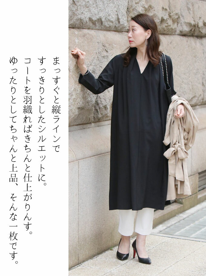【再入荷3月29日20時より】「Vieo」「きちんと」と、「私らしさ」と。ワンピース ゆったり レディース Vieo ヴィオ きれいめ シンプル 大人 チュニック丈 フォーマル長袖 秋冬 黒 卒業式 入学式 学校行事