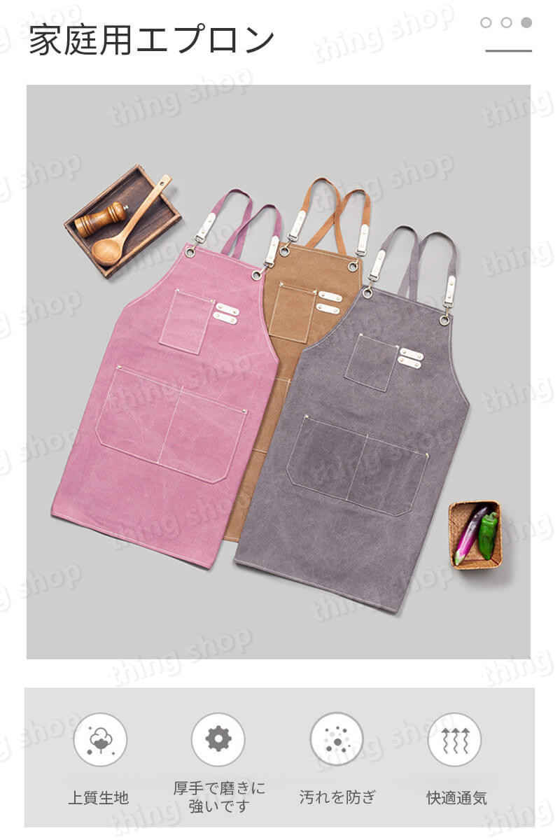 商品パラメータ 品名:デニムエプロン 重さ:380g 素材:デニム・キャンバス カラー:カレーグレーブルーグリーン 漂白不可 低温アイロン 常温手洗い 産地:中国