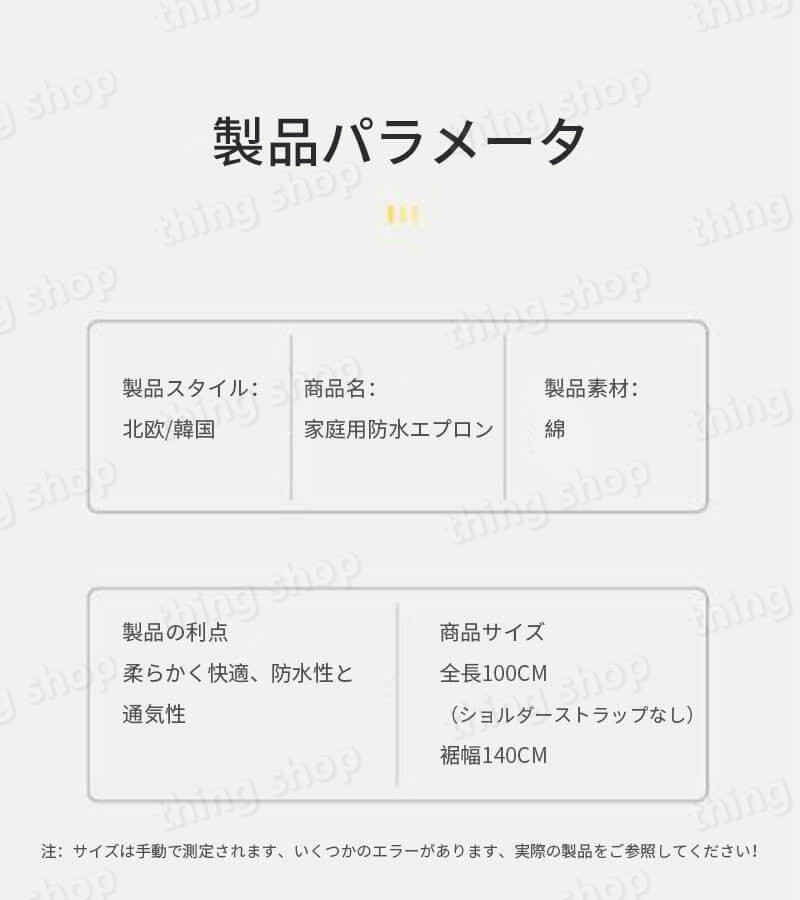 製品パラメータ 製品スタイル:北欧/韓国 商品名 家庭用防水エプロン 製品素材:綿 製品の利点 柔らかく快適、防水性と通気性 商品サイズ 全長100cm(ショルダーストラップなし)裾幅140cm 注:サイズは手動で測定されます、いくつかのエラーがあります、実際の製品をご参照してください! 産地:中国