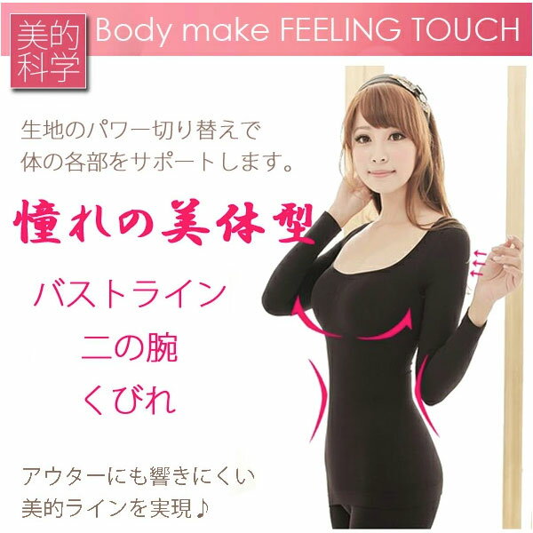 [送料無料]美しいスタイルの維持に美的科学[上半身補正 シェイプアップボディインナー長袖]バストライン・二の腕・くびれの上半身が気になるレディース下着ゲルマニウム・チタン・銀配合 理想的なボディライン&美容引き締め加圧補正下着トップス・ワンピース・Tシャツ