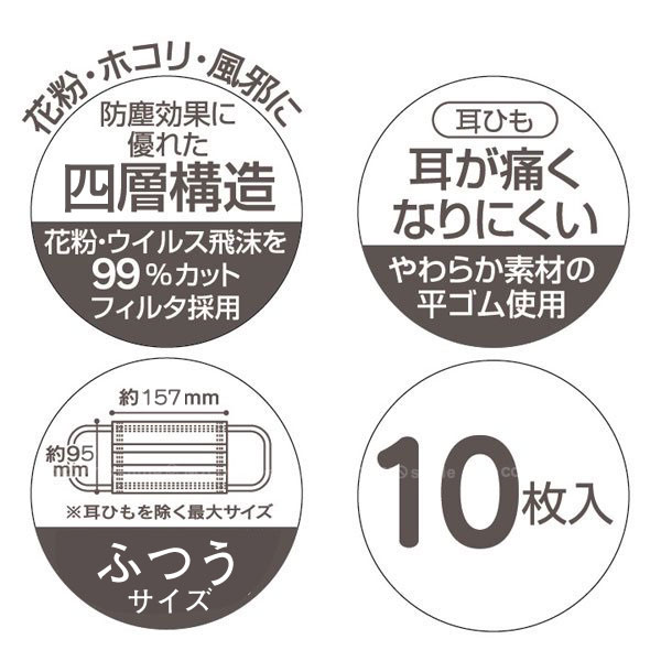 サイズ (約)横15.7×縦9.5cm セット内容 10枚入 素材・材質 表地:ポリエステル フィルタ:ポリプロピレン 裏地:ポリプロピレン 耳ひも部:ポリエステル、ポリウレタン ノーズワイヤー:ポリエチレン キーワード プリーツ 立体 使い捨て マスク 不織布 レギュラー 大人 ふつう 普通 サイズ MSKP4 ピンク ベージュ イエロー カラーマスク リサラーソン 468384 ミッキーマウス 573057くまのプーさん 573064 チップ&デール 573071 プリンセス 573088 ディズニー ミッキー プーさん キャラクター かわいい チップ デール レディース 女性用 [SKA] 202201-04