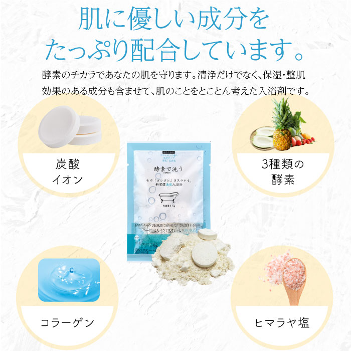 【シリーズ累計販売個数100万個突破】3種類の酵素×炭酸イオンの美肌入浴法 酵素で洗う入浴剤 日本製 無添加 乳白色 コラーゲン・ヒマラヤ岩塩(ミネラル)配合 温浴効果で発汗できる入浴料 清浄効果 保湿効果 整肌効果 乾燥肌 敏感肌 しっとり 毛穴汚れ 皮脂汚れ 冷え性