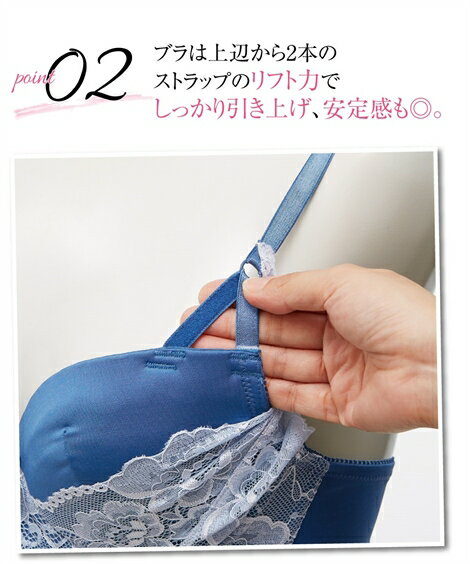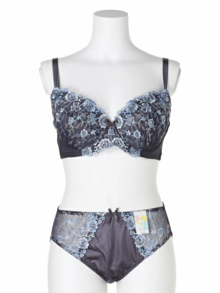ブラジャー ショーツ セット 大きいサイズ レディース ボディハッピー ハッピーフラワー ( トリンプ ) サックス/黒 C85_LL/D85_LL/E85_LL/F85_LL/G85_LL ニッセン nissen