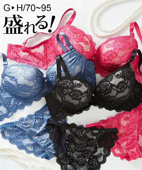 【Gカップ】ブラジャー ブラショーツセット 大きいサイズ 下着 レディース/G70 G75 G80 G85 G90 G95 G100/モールドブラ モールドカップブラ ブラセット 上下 花柄 リボン サテン/ネイビー ピンク パープル 紫 ブラック 黒/かわいい おしゃれ 安い 人気