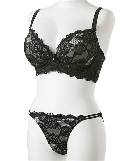ブラジャー ショーツ セット 大きいサイズ レディース 脇高 ダークカラー オールレース デザイン グレー/ブラック G85_LL〜H100_5L ニッセン nissen