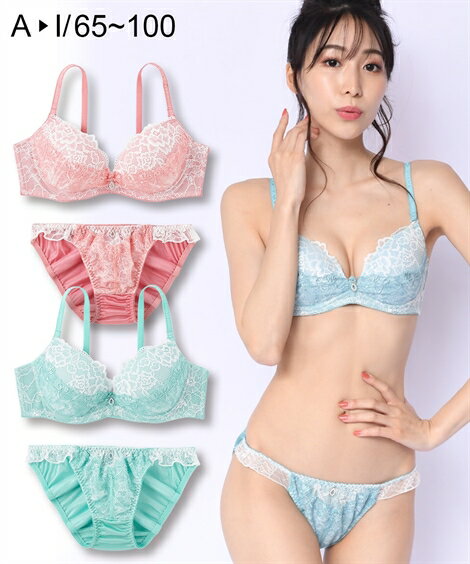 大きいサイズ レディース 【Re-J&SUPURE】フローラルレースブラ&ショーツD85 D90 D95 E85 E90 E95 F85 F90 F95 G85 G90 G95 H85 H90 H95 85I 90I 95I ブラ ショーツ セット ブラジャー ブラジャーセット ブラショーツ 大人 可愛い かわいい レース 上品 ピンク 黄色