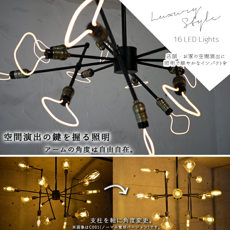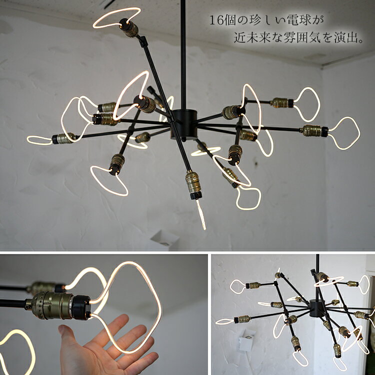 シーリングライト リビング ダイニング 玄関 寝室 モダン おしゃれ 16灯 2720ルーメン LED 明るい ペンダントライト シャンデリア 黒 ブラック ヨーロピアン 天井 吊り下げ インダストリアル 一人暮らし 6畳 8畳 10畳 12畳 吹き抜け 北欧 アンティーク レトロ ブルックリン