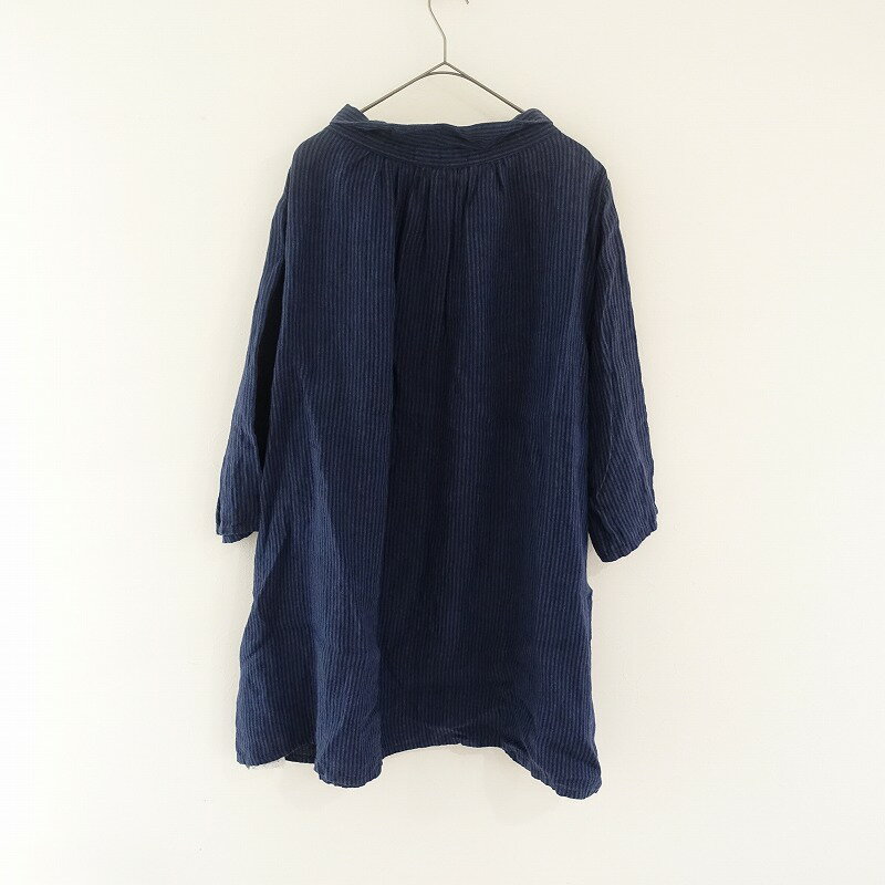 表記サイズ:- 実寸サイズ:肩幅50cm, 身幅69cm, 袖丈48cm, 着丈84cm, 裄丈71cm, ウエスト幅80cm, ヒップ幅85cm (多少の誤差はご了承ください) 素材:麻100% (素材の特性上、節糸やムラ糸が有る場合がありますが、天然繊維特有であることをご理解ください) デザイン:fog linen work×nest Robe のリネンストライプフロントボタンワンピースです。